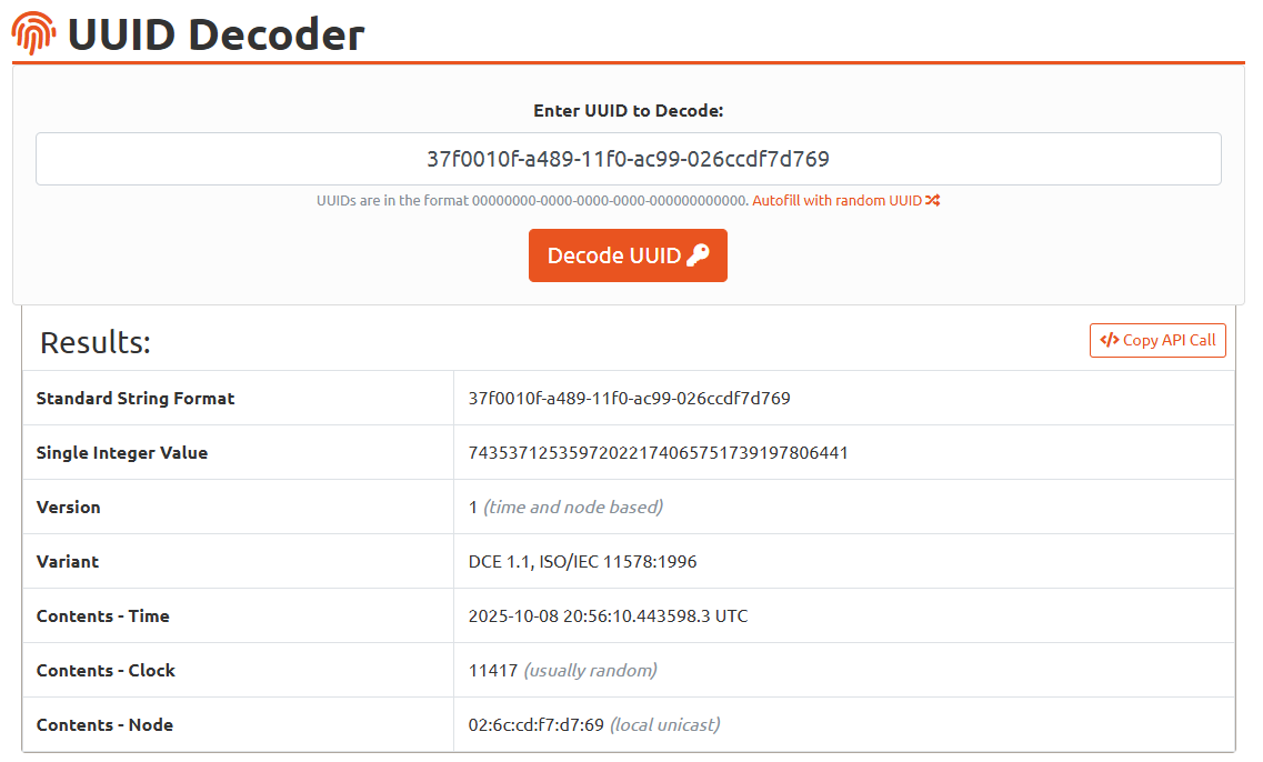 Como conocemos los valores estáticos (MAC y secuencia) y tenemos un rango de tiempo acotado, podemos generar todos los UUIDs posibles para ese intervalo y probar cuál es válido.