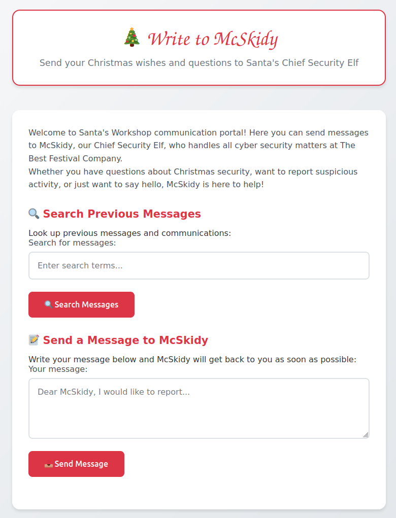 Hoy nos enfrentamos a una aplicación web que parece haber sido desarrollada con prisas para la temporada navideña. Los conejos traviesos han dejado vulnerabilidades críticas que permiten la ejecución de código malicioso en el navegador de los usuarios.
