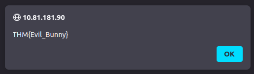 What's the reflected XSS flag? -> THM{Evil_Bunny}
