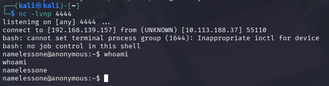 Tengo shell como el usuario namelessone. 🎉