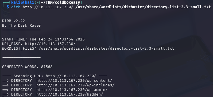 dirb http://10.113.167.230/ /usr/share/wordlists/dirbuster/directory-list-2.3-small.txtFuzzing de directorios con wordlist mediana