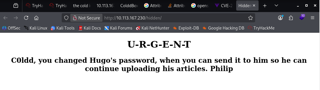 Este mensaje nos da tres usuarios potenciales: C0ldd, Hugo y Philip.