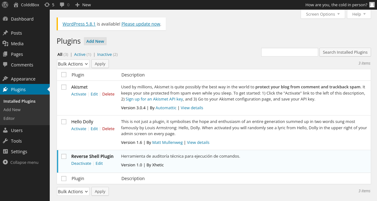Esto significa que puedo crear un supuesto plugin el cual contenga código malicioso para enviarme una revshell.
