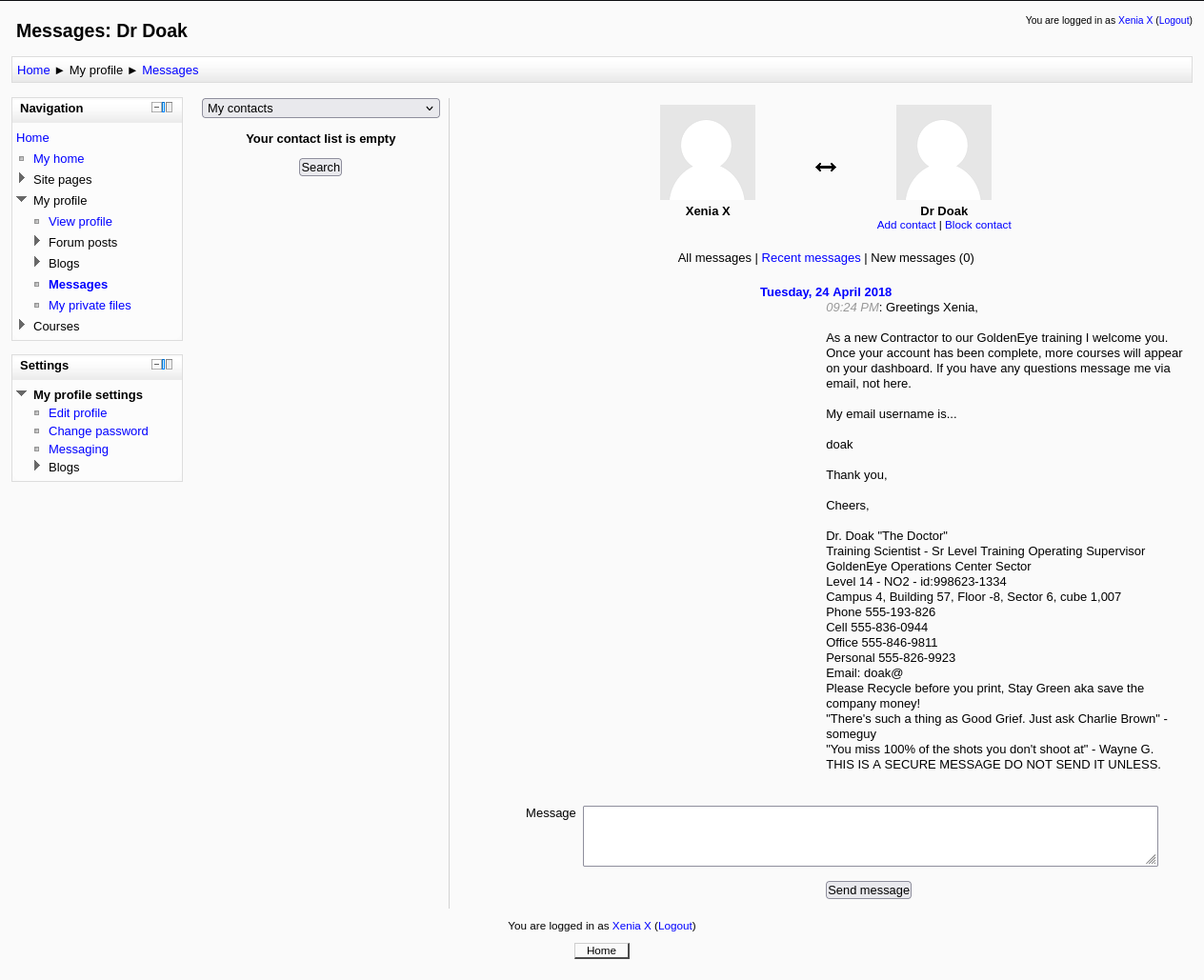 Boris, this is admin. You can electronically communicate to co-workers and students here. I'm not going to scan emails for security risks because I trust you and the other admins here.