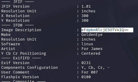 Dentro del grupo IFD0 hay un campo Image Description con una cadena que parece base64.