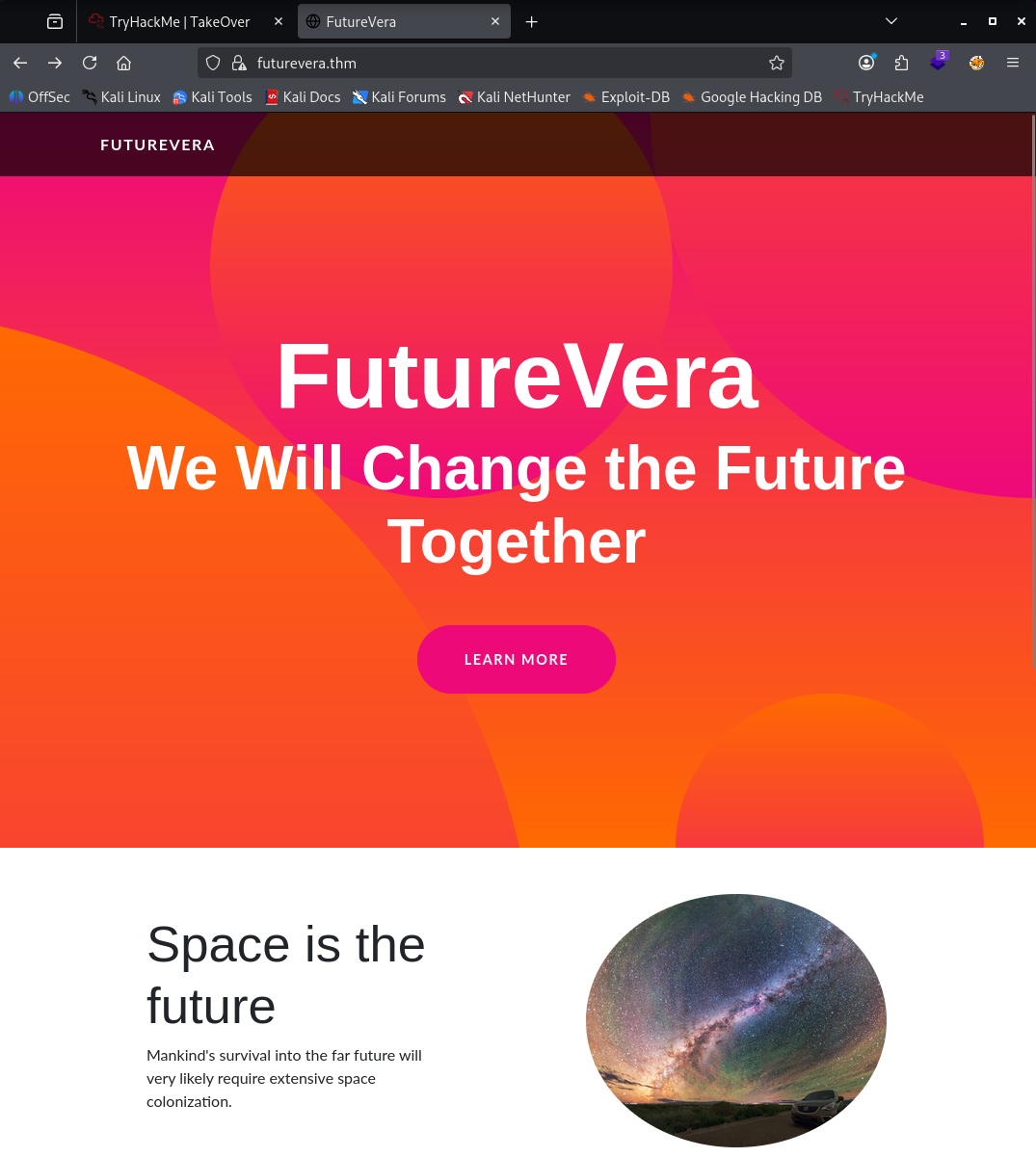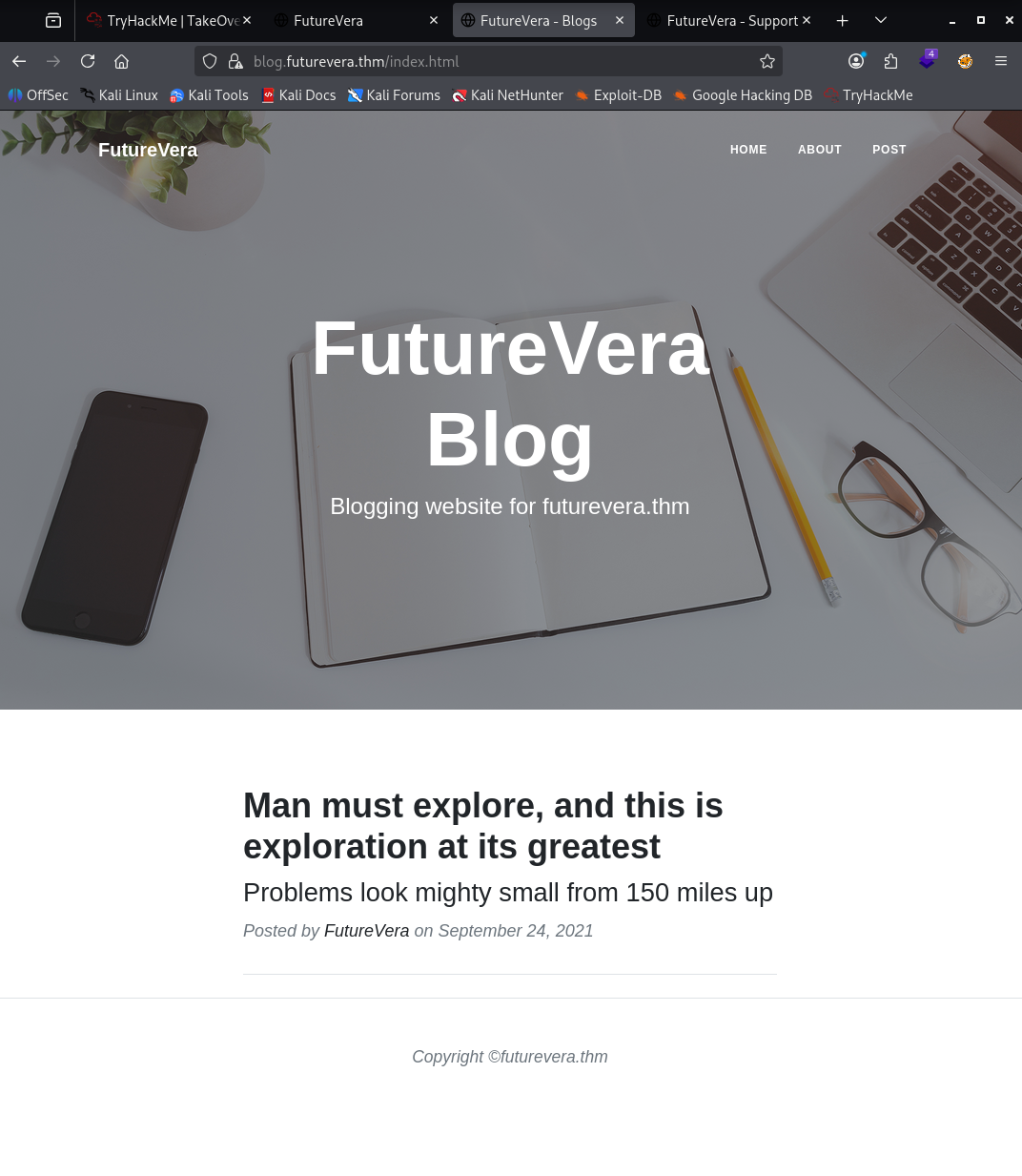 Al abrir https://futurevera.thm veo una web tipo blog.